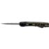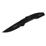 The Scorch automatic knife is built for speed. It has a contoured two-part G10 handle in black and OD-Green. This 4.5-inch closedlength push-button automatic has a 3.5-inch-long D2 black stone-washed coated blade with a hollow grind. It has specifically designed slots cut out of the blade to make it lighter, so it will deploy more quickly. The knife is designed for quick and easy opening. The knife can be opened with the push of a button to release its coil spring for quick and full opening. There is a slide safety lock on the back of the knife that can be used to lock the button in the open or closed position so that the button cannot be pushed. The pocket clip has a tip-up design and is reversible.