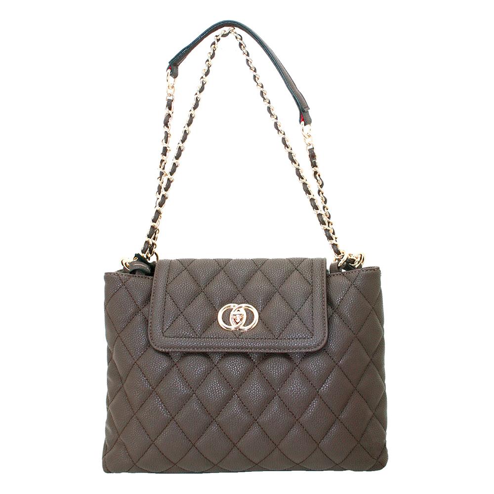 One of the most stylish and elegant bags, this item is unique in that it has a single chain that serves the purpose of both handles and shoulder strap. It provides the owner with ample space for storage while also having an outside zipper pocket for easy access to important items. This extravagant, yet functional handbag is composed of vegan leather. It has a concealed carry pocket located in the center of the bag that is accessible from both the left and right sides and equipped with divided interior space for use on a day-to-day basis.