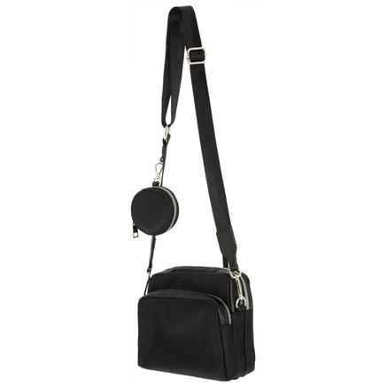 Made from durable water-resistant and stain-resistant nylon, Harper is the perfect bag for when you are on the go. Do not be fooled this lightweight bag is large enough to carry all your everyday essential items in either main zipped compartments as well as a separate detachable coin purse. The detachable fabric shoulder strap makes carrying comfortable for everyday use. The silver hardware goes beautifully with this crossbody and completes every look with a classy style.