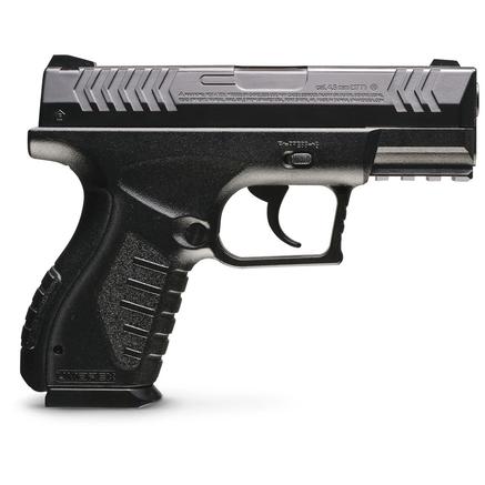 The Umarex XBG has a 19-shot drop-free metal magazine (mfg SKU #: 2253517) for quick reloading and is powered by a single 12g CO2 capsule. This lightweight, compact BB pistol has fixed front and rear sights and shoots in double action at 410 FPS.