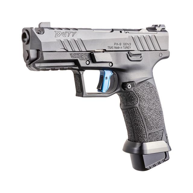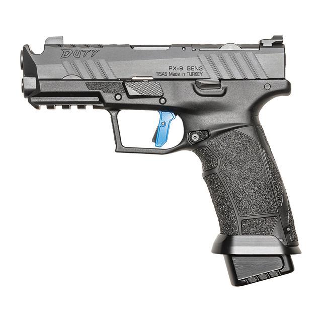 The PX-9 Duty Comp is the next evolution of the proven PX-9 series. Now equipped with a match-grade barrel and a compensator port, it offers exceptional recoil control for faster follow-up shots. The slide features aggressive serrations and machined cuts for reduced weight and enhanced grip. Designed with both duty and competition in mind, it utilizes high-capacity P226-pattern magazines and includes a factory RMR optic cut for co-witnessing with standard sights.