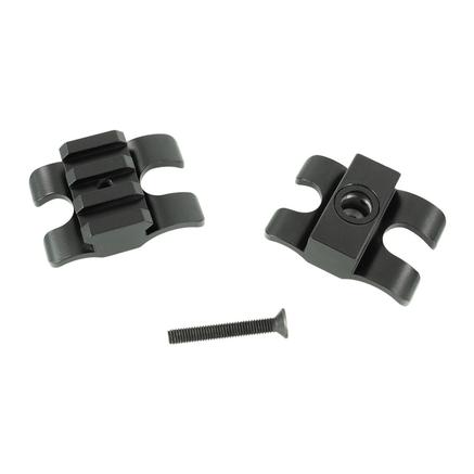 Barrel clamp for the MAC-2 series shotguns and compatiable variants with a M1913 Picatinny type rail and QD socket. Anodized black finish.
