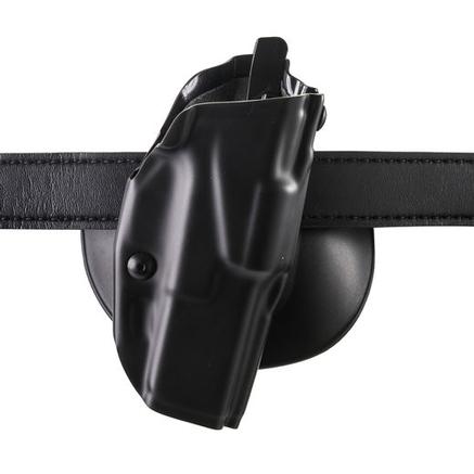 Combining the concealable, accessible design of an open-top paddle holster with the security of ALS, the Safariland Model 6378 Holster is made for the rigors of daily use by plain-clothed officers and sidearm carriers. ALS locks the firearm securely in place when holstered, but still allows a natural draw with a swipe of the thumb release as you establish your grip. SafariLaminate construction makes the holster strong on the outside, while SafariSuede on the inside protects your firearm_s front sight and finish. The Model 6378 comes with both the paddle attachment and a standard belt loop, making this holster as versatile as it is functional.