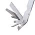 Includes pliers, gripper, hard wire cutter, wire crimper, blasting cap crimper, double toothed wood saw, partially serrated blade, 3-sided file, large screwdriver, Phillips screwdriver, 1/4” drive, awl, can opener, small screwdriver, bottle opener, medium screwdriver, v-cutter, and rulers.