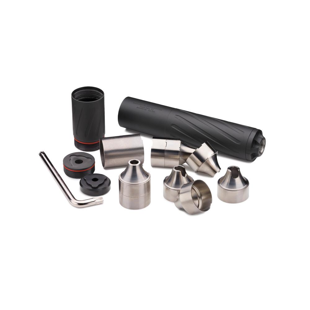 The BANISH 30 comes as a 9-inch suppressor holding eight baffles, but if you’ll be shooting suppressed in tighter, confined spaces or hunting blinds, it can easily break down and assemble into a 7-inch configuration with six baffles. Internal testing shows that the BANISH 30 reduces the report of a .308 by 34 decibels at a minimum.