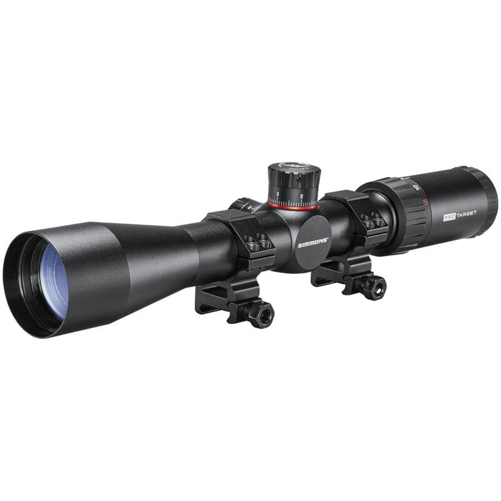 The Simmons Pro Target Riflescopes offer an all-glass optical system provides crisp images in low lighting conditions with fully coated lenses and IPX7 waterproof, fog-proof and shockproof construction giving you piece of mind in the outdoors. Built with an aggressive and rugged new design, including textured magnification power change ring and exposed adjustable windage and elevation target turrets. The Pro Target riflescopes feature a 30mm one-piece aluminum main tube with a Simmons Mil Dot Reticle. All Simmons riflescopes come ready to go out of the box with included lens covers and one-inch aluminum Weaver-style rings.