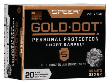 Speer Gold Dot Short Barrel Handgun Ammunition .45 ACP 230 gr HP 820 fps 20/ct