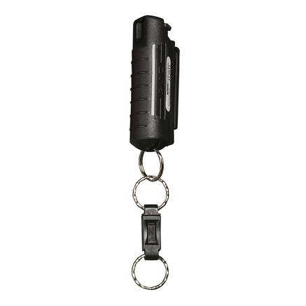 The Quick Release with detachable key chain allows immediate access to your defense spray when unlocking a door or driving an automobile. The most popular SABRE style, the Quick Release, is a powerful 0.54 oz container delivering a ballistic stream which reduces wind blow-back about 8-10 feet. Approximately 25 shots are contained in the compact canister.