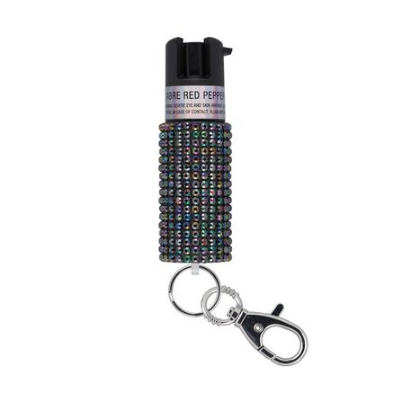 Upgrade your style while staying safe with easy access to protection with the SABRE Jeweled Pepper Spray with Snap Clip and Snap Clip. The canister contains 25 bursts (5x the competition) for protection against multiple threats from a safe distance. With an industry-exclusive HPLC laboratory, only SABRE guarantees its maximum strength formulation in every canister to help give you peace of mind, certainty, reliability, and safety when you need it most. The twist lock safety prevents an accidental discharge from occurring in your purse or bag. Snap Clip allows for quick and secure attachment onto keys and bags for easy access to your protection when you need it most. Show off your style with the sparkly jeweled monochromatic design in black, silver, or lavender. SABRE Pepper Spray is made in USA.