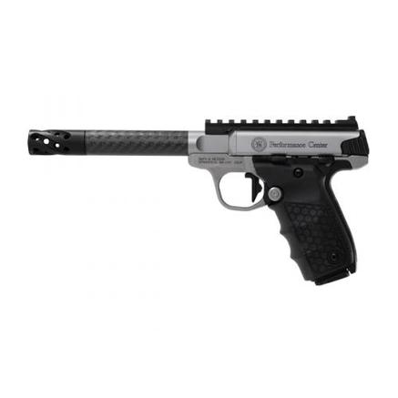 The Performance Center SW22 Victory Target pistols are chambered in .22LR and are designed specifically for target shooting competitions. These pistols feature 6-inch target barrels, muzzle brakes, and Tandemkross hiveGrips. The Performance Center SW22 Victory Target pistols ship with two 10-round magazines, and are available with either a 6-inch Fluted or 6-inch Carbon Fiber barrel. Each Performance Center SW22 Victory Target pistol ships with a picatinny-style rail for the quick mounting of an optic. The pistol’s high-end features, modern styling and enriched functionality place the SW22 Victory in a category of its own with an affordable price to match.