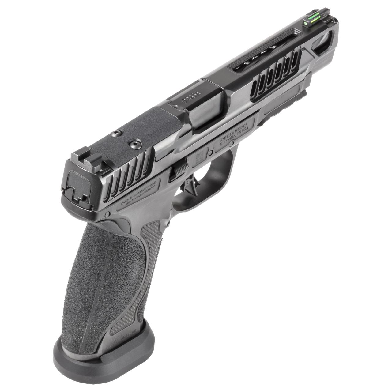 The M&P® M2.0® Competitor® HD provides the highest level shooting experience for those who measure time in fractions of seconds. Specifically engineered for speed, the Competitor HD features a spiral fluted stainless steel barrel and a lightened slide with deeper, more aggressive serrations for the most agile competition M&P yet. The stainless steel frame with new texturing on the sides makes this pistol melt into your hand and balance like an extension of your arm. The Competitor HD inspires you to train harder, go faster and compete more as you push limits of what a factory pistol was capable of.