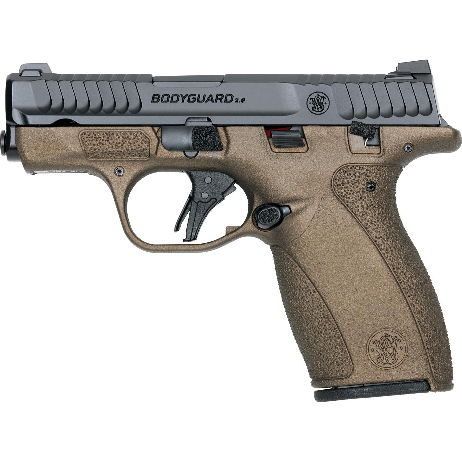 S&W Exclusive "Mid-Bro" M&P Bodyguard 2.0 No Thumb Safety Handgun .380 Auto 10(1)&12(1)rd Magazines 2.75" Barrel Midnight Bronze Grip