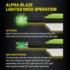 Deactivate the easy on/off Alpha-Blaze lighted nock by pulling the nock straight out until the light turns off – no tools required. The LED light of the Alpha-Blaze system lasts for approximately twenty-four hours when activated.