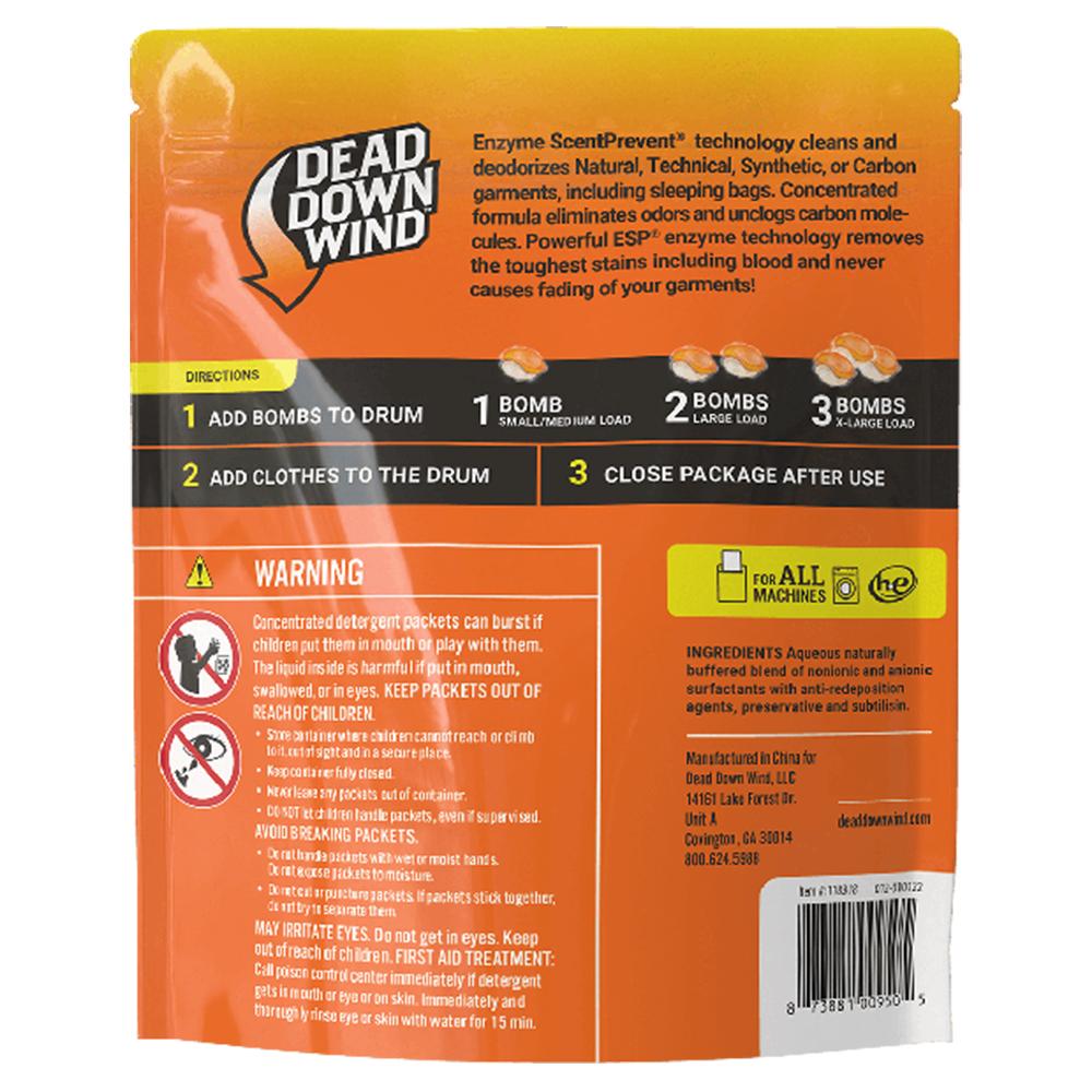 Dead Down Wind Unscented Laundry Detergent Bombs are made using advanced enzyme technology to eliminate a broad spectrum of odors that can attach to your clothing and hunting gear. It attracts and attacks bacteria at the molecular level, eliminating it. Dead Down Wind Laundry Detergent contains no biocides, so you can use confidently knowing that your skin and gear are safe. Use Dead Down Wind Laundry Detergent to clean, deodorize & extend the life of the garments and keep yourself field ready.