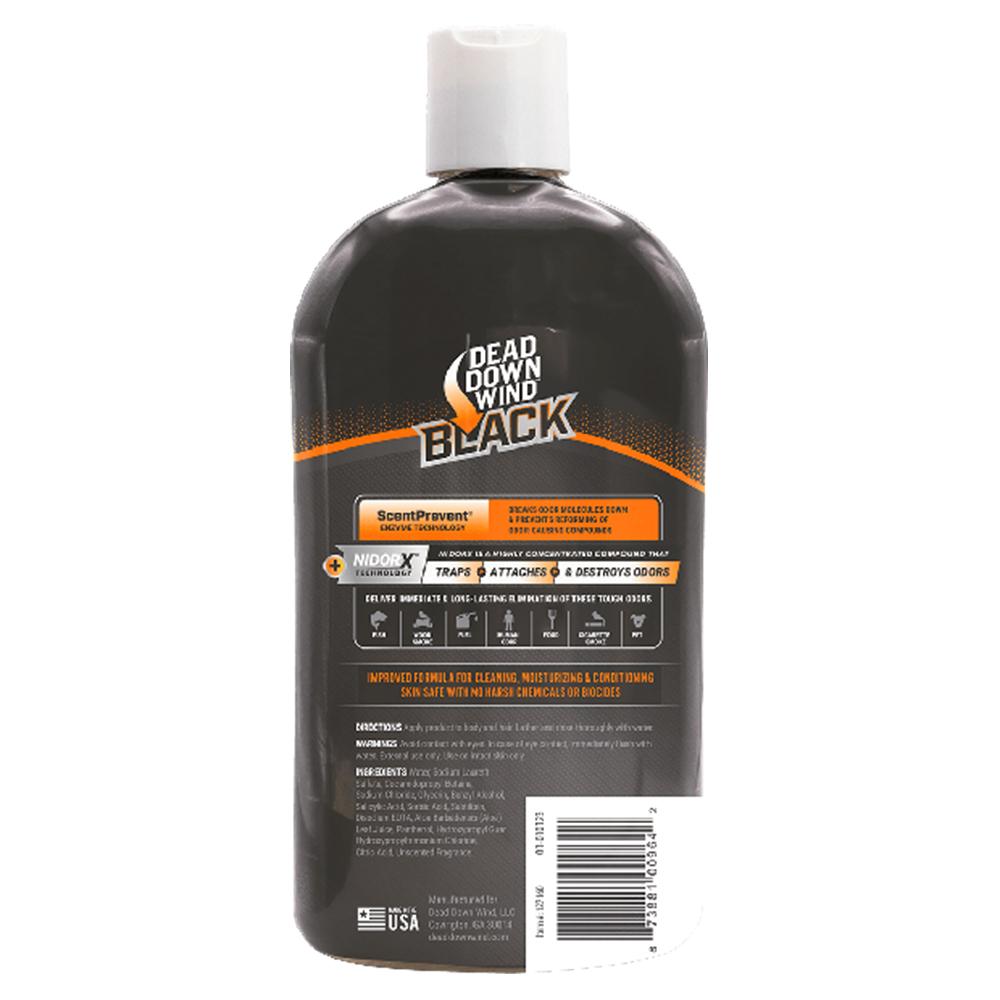 Dead Down Wind BLACK Premium with NidorX technology features an innovative 3-step formula that effectively traps, attaches to, and destroys odors. NidorX is a highly concentrated compound designed to entrap and block malodor molecules from being detected. Combined with Dead Down Wind's ScentPrevent enzyme formula, Dead Down Wind BLACK Premium 3-in-1 Body Wash, Shampoo, and Conditioner is scientifically proven to deliver superior, immediate, and long-lasting odor elimination against even the most stubborn odors.