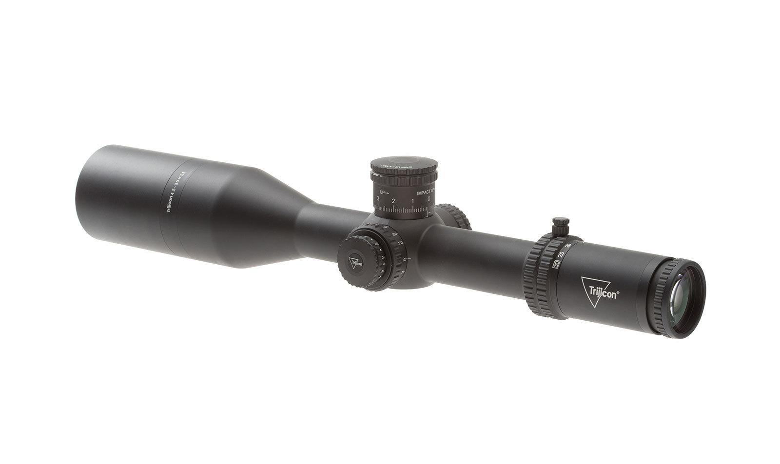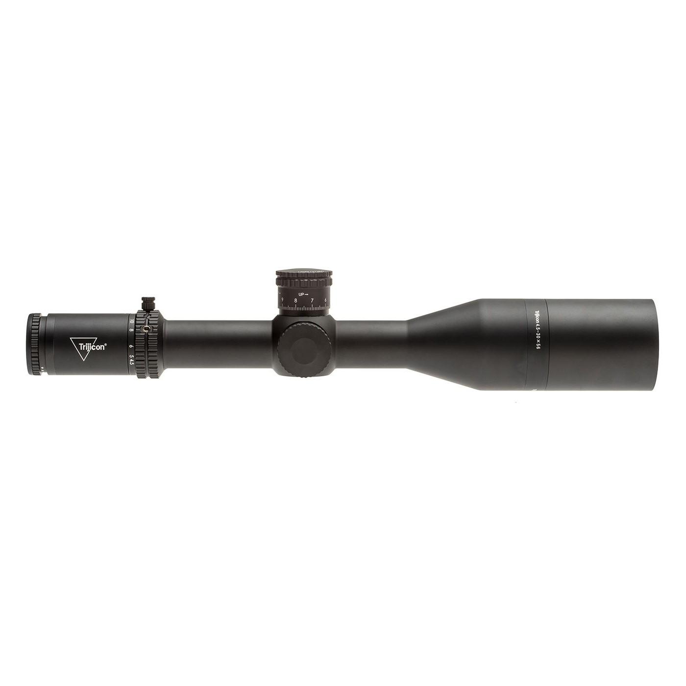 Excellent light transmission. Pinpoint accuracy in any condition. Uncompromised durability. These are the features that set the Trijicon Tenmile® 4.5-30x56 long-range riflescope apart. The 34mm tube provides generous elevation and windage adjuster travel. You can also expect crisp, precise adjustments with zero stop; extra-low dispersion glass for true color and detail without distortion; and dual red/green illuminated reticles that let you enjoy “both-eyes-open” shooting for fast engagement.