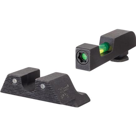 Trijicon DI Night Sights feature a chemical and heat resistant fiber, finished with the same proprietary technique as the Trijicon ACOG, coupled with a tritium lamp capped with a sapphire jewel. This dual-illumination technology amplifies collected light, ensuring an ultra-bright aiming point in any light from daylight-bright to low-light to complete darkness.