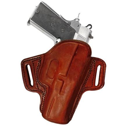 Open Top muzzle design for a fast draw. Open muzzle design. Two piece construction with front molding and backside contour to body. Deep molding for a perfect fit. Leather lined to protect your gun's finish. Belt slots designed to fit belts up to 1