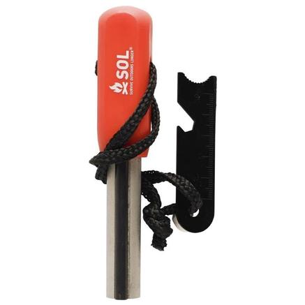 The Survive Outdoors Longer Mag Striker is the all-in-one fire starter that includes the essentials needed for starting a fire: a steel striker, flint rod, and magnesium. The tool is designed with the flint and magnesium rods embedded into the robust handle, meaning your grip will not disappear as you shave off the magnesium, unlike with a traditional magnesium fire starter. The curved edge on the steel scraper is engineered to make scraping a pile of magnesium easier. The straight edge struck against the flint rod acts as your flint and steel, creating a shower of sparks to ignite the magnesium and light your kindling. The Mag Striker makes starting a fire easier, even with cold fingers or in survival situations. A bottle opener is included on the steel striker, so you can relax with a cold beverage once your fire is burning steadily.