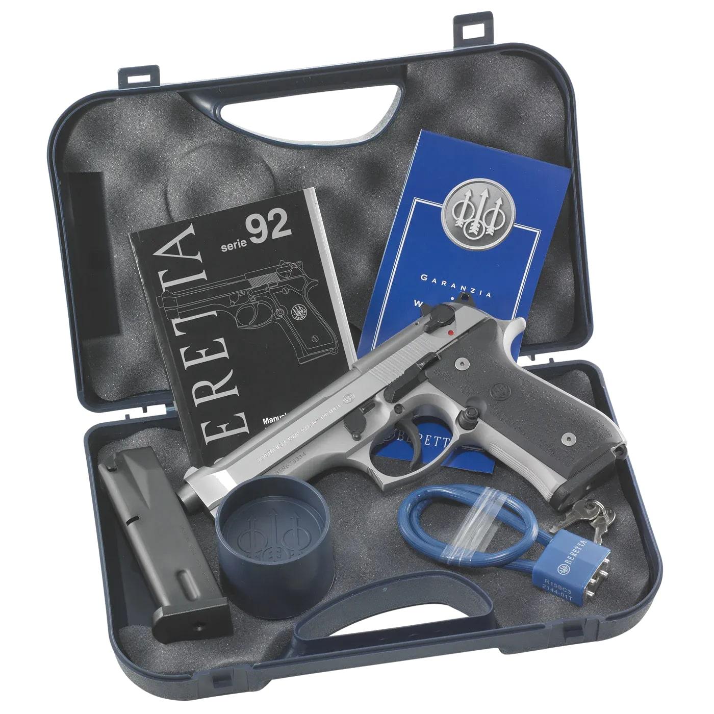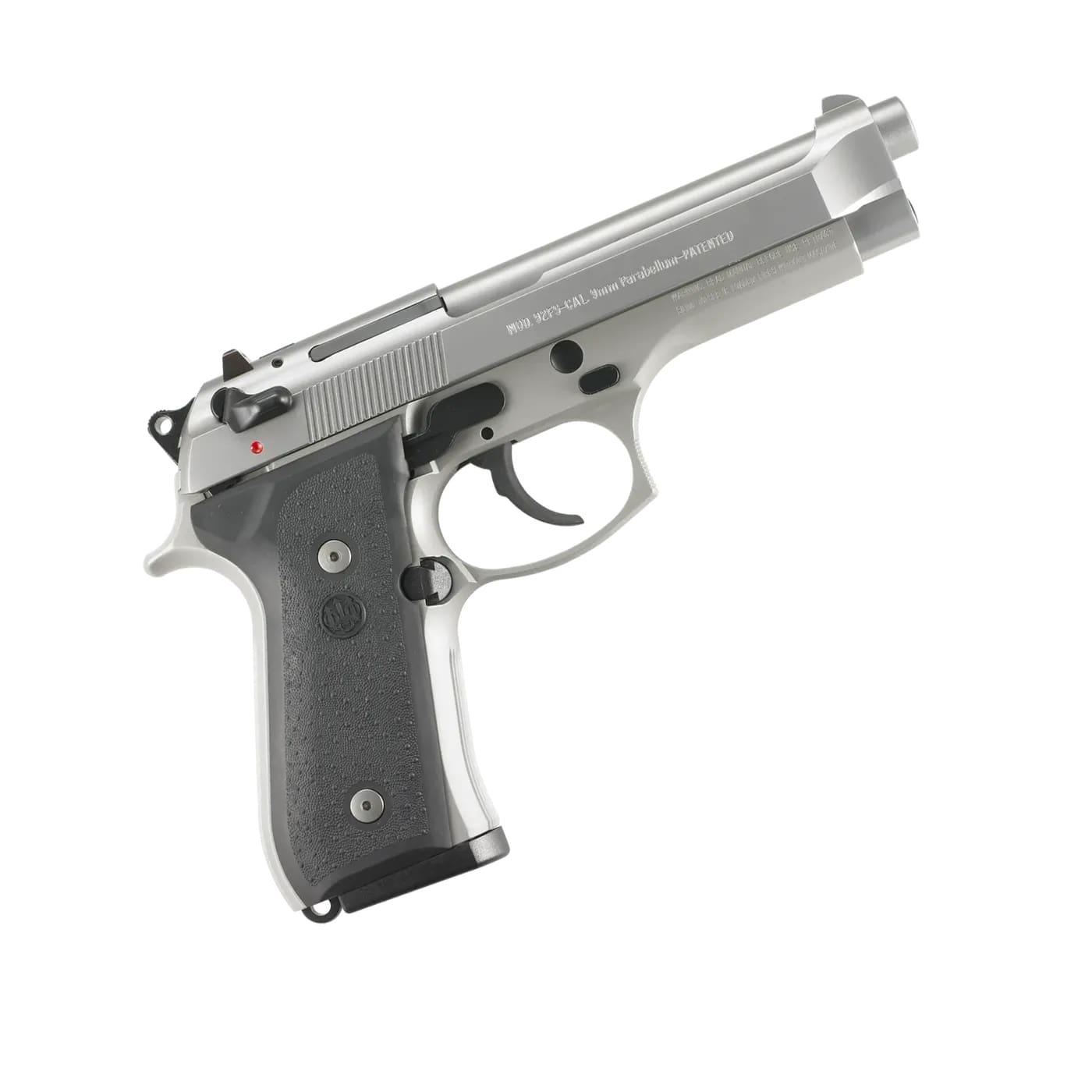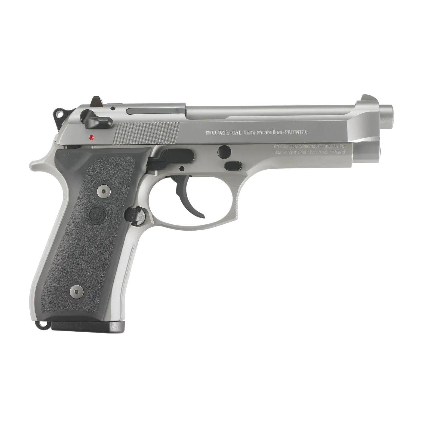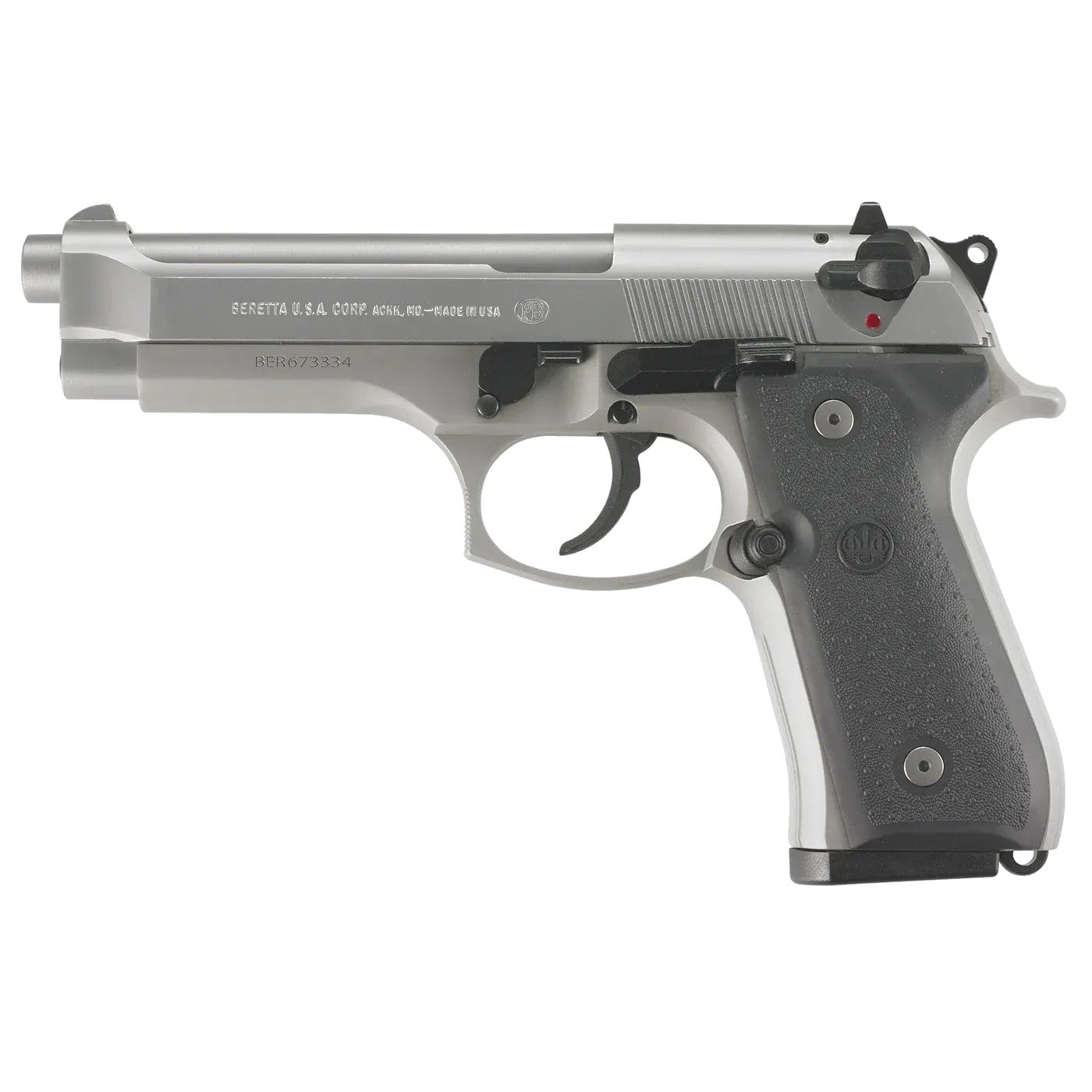 The Beretta 92FS Inox gives you all the features of the legendary 92FS or M9 (the official sidearm of the US military for more than 35 years), in a rugged and attractive satin stainless steel finish. The slide, barrel, and internal parts are all stainless, while the alloy frame is anodized to match the color and finish of the other components. It also features stippled-textured soft rubber grips that further absorb recoil while affording a firm and positive grip. Besides being one of the most photogenic handguns ever made (it appeared in countless movies and TV shows), it is perfect for home or personal defense, as well as recreational shooting.