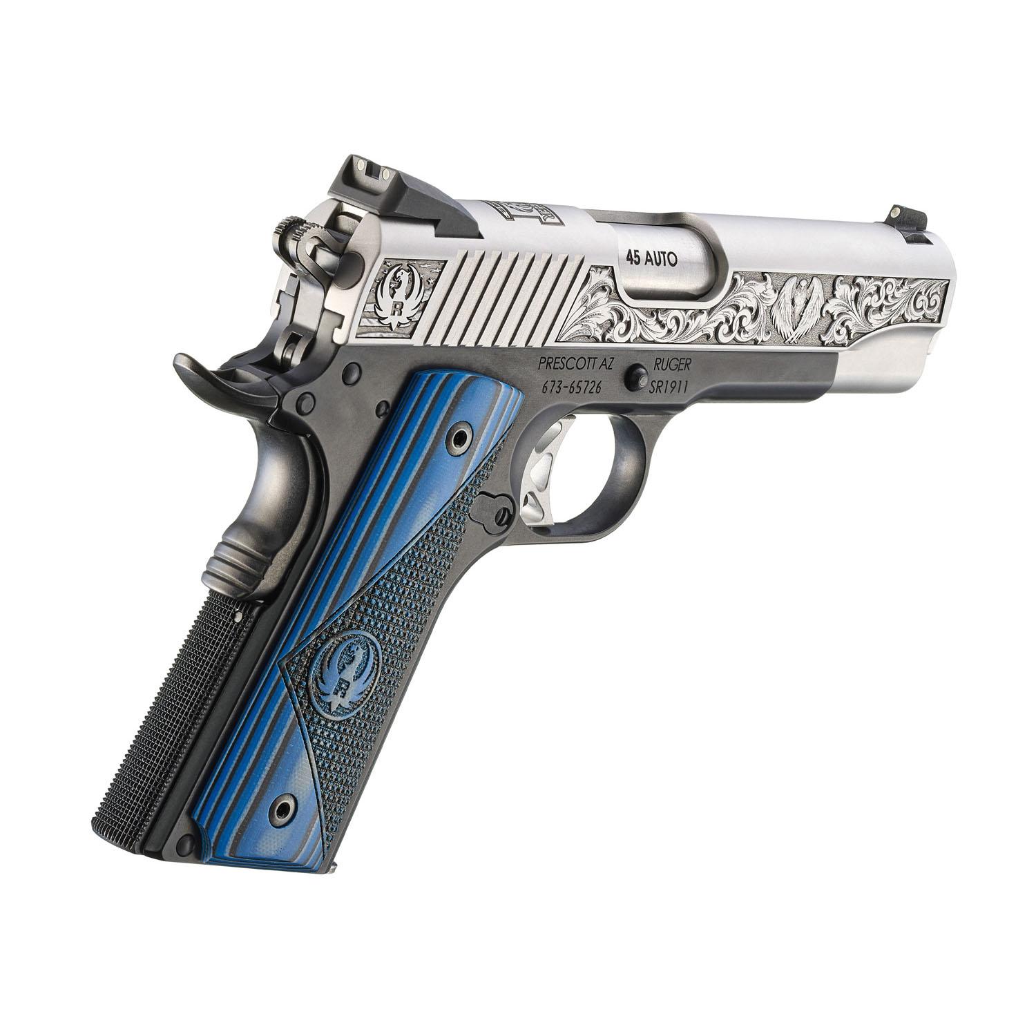 Ruger SR1911 "411 Sunapee St." Street Edition Handgun 45 Auto 7rd Magazines(2) 4.25" Barrel Engraved Frame G10 Grips