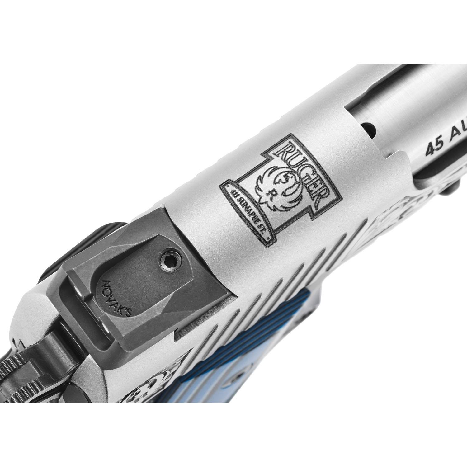 - Newport, NH Edition model features a finely engraved stainless steel slide including the Ruger logo and bald eagle on the sides with the Ruger logo and "411 Sunapee St." adorned on the top of the slide.
