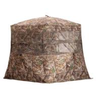 At its core, the low hub blind is meant to be very spacious, and accommodate all hunters. With the lower hub design, the overall shooting space through the windows is much larger and can start lower on the wall to help accommodate all archers, crossbows, and rifle hunters shooting from a seated position. This design offers increased foot room for your gear, multiple hunters, camera tripods, etc., but still has the same ceiling footprint as a standard designed blind. See-through mesh and silent slide windows create huge visibility in a versatile blind package. These 5-hub style blinds are available in either Realtree or Mossy Oak Camouflage and have a gigantic 72” X72” footprint. Backpack-style carry case, rope tie-downs, and ground stakes included.