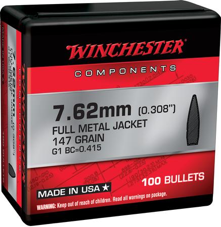 Winchester FMJBT Bullets 7.62mm .308" 147gr 100/ct