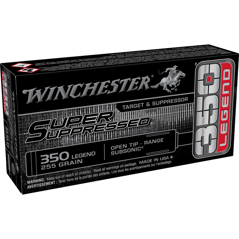 The all-new 350 Legend is a highly adaptable straight-walled cartridge that is ideal for subsonic applications with suppressed firearms. Super Suppressed ammunition is engineered for noise reduction, decreased barrel/suppressor fouling and recoil mitigation.