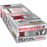 Winchester Super-X Powerpoint Rimfire Ammunition offers a .22 long rifle cartridge and a 40-grain bullet. The ammunition is ideal for shooting small game, such as rabbits or squirrels. There is also a nearly identical option but with a Lead Hollow Point.