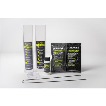 Suppressor Sauce is the first suppressor cleaner available in powder form that is odorless, ammonia-free, non-flammable, and safe to use on Titanium, Inconel, Stainless Steel, and Aluminum suppressors. Suppressor Sauce Part A: Carbon Removal Formula & Activator and Suppressor Sauce Part B: Heavy Metal Removal Formula are advanced, single-use proprietary formulas designed to eliminate carbon buildup and to target heavy metal deposits like lead and copper effectively and safely without requiring disassembly or excessive manual labor.