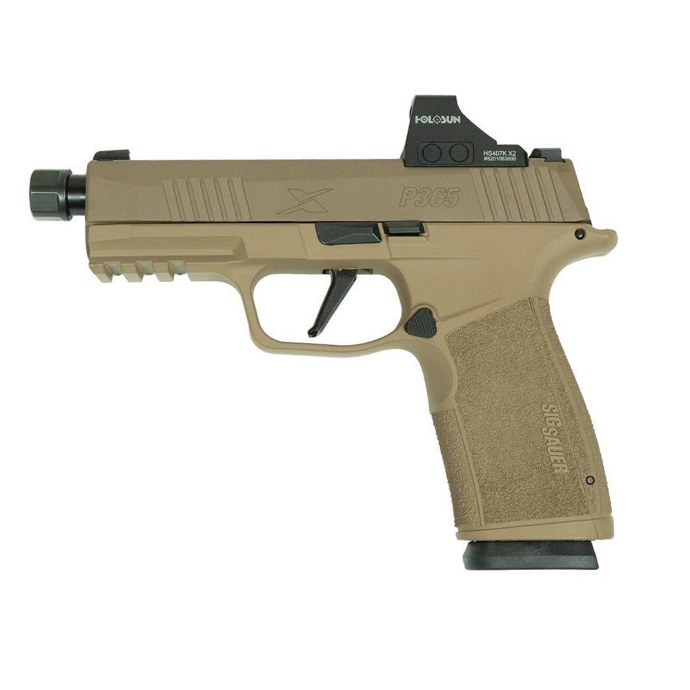 Sig P365 XMacro Handgun 9mm Luger 17rd Magazines (2) Threaded Barrel Two-Tone Tan XSeries Slide with Optic