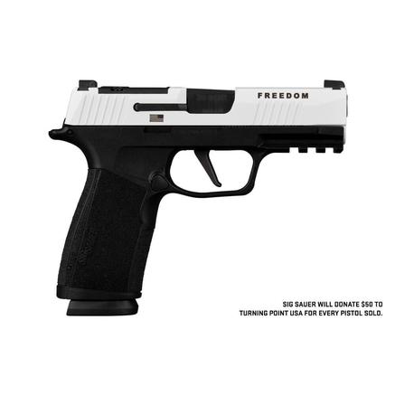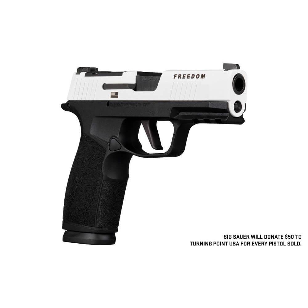 the commitment and conviction of Turning Point USA. Available in both a 1911 XFull and XCarry size, or the popular P365-XMACRO, each features a white Cerakote slide engraved with the word "Freedom" and an American flag. For every Freedom pistol sold, SIG SAUER will donate $50 to Turning Point USA to help ensure the fight continues.