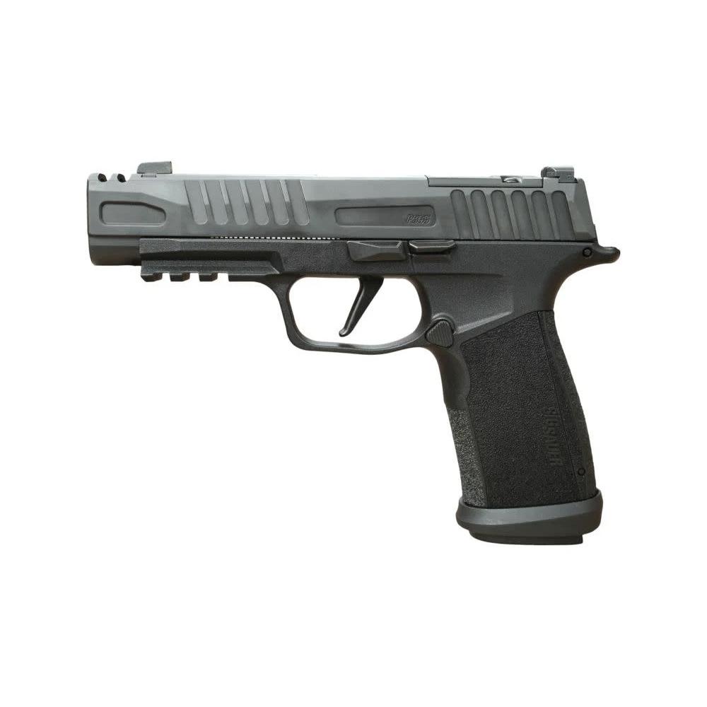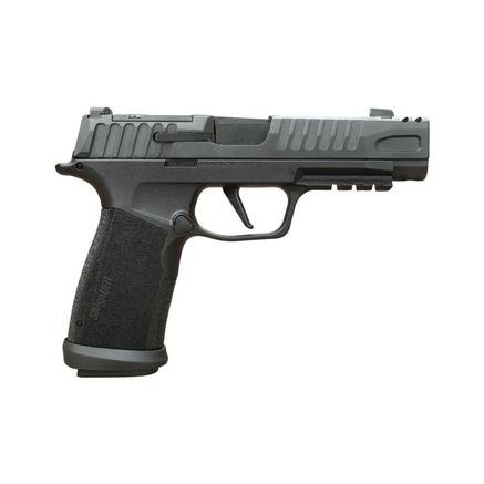 The pistol comes equipped with a ROMEO-X SIG-LOC Compact optic, fully enclosed, sealed, and gas-purged for durability and all-weather performance. Mounted from underneath using the SIG-LOC system, it delivers the strongest optic lockup in the industry with a low deck height for standard-height iron sight co-witness.