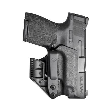 Mission First Tactical's Minimalist Holster is a low profile holster with all the performance and reliability of a full-size holster. For use Inside the Waistband (IWB) in the Appendix and 5:00 positions. Both right & left-hand positioning is accomplished with the removal of the claw and use of provided spacer. The claw, for right handed shooters, keeps the heel of the firearm pressed into your side minimizing its print. The famous audible click with added side retention makes each draw smooth and secure ideal for Concealed Carry. Each holster is handmade to precise tolerances for each model of handgun using the most advanced techniques and materials for an all-day comfortable carry. Holsters include a Tuckable Belt Clip that accommodates a 1-1 ½ belt. Or remove the clip and claw and add a static-line tether keeping the trigger secure while using the firearm inside a night stand safe, purse, briefcase, vehicle console, etc.