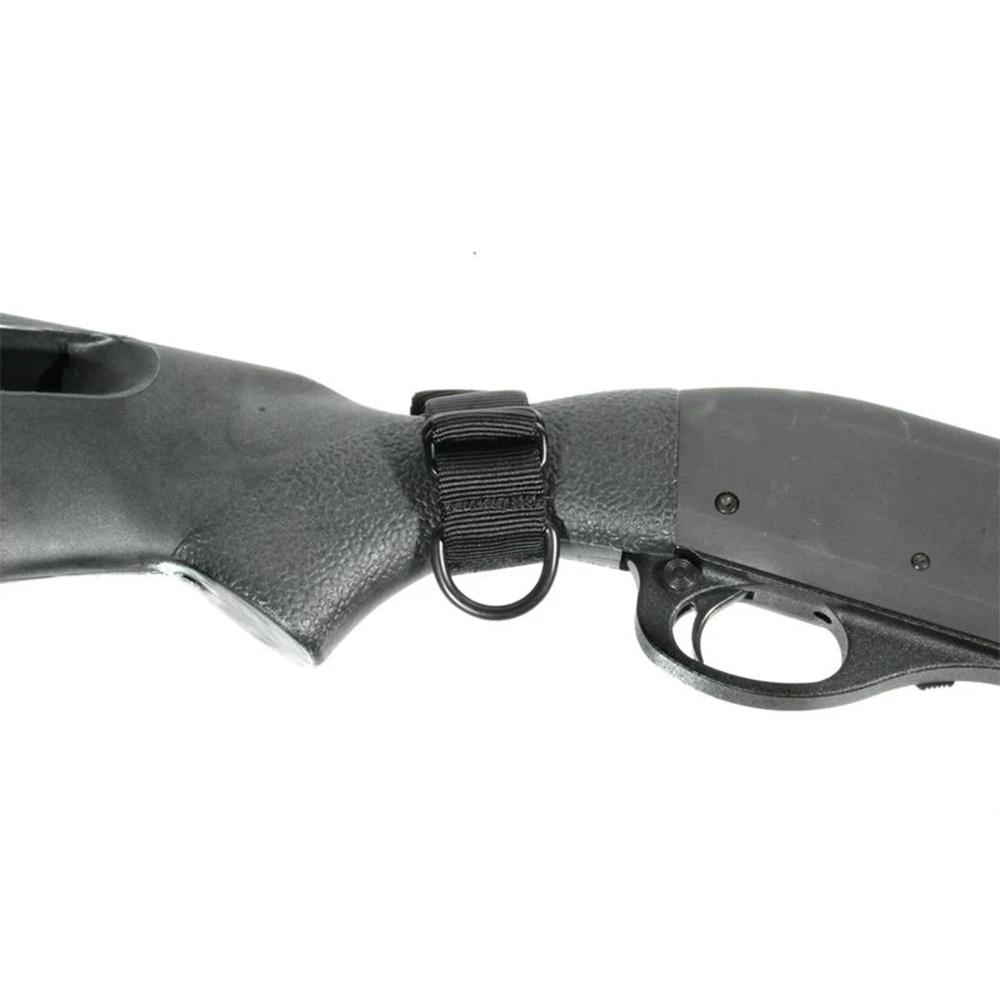 This adapter configures any weapon to access a single-point sling. Constructed of heavy-duty nylon webbing with robust metal D-rings