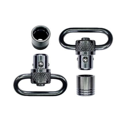 Grovtec's Push Button Swivels provide a flush mounting system without protruding swivel studs. Fore end and butt stock swivel bases are countersunk into stock, and glued into place. Easily installed and fast operating for users who remove slings often. Includes smooth bases.
