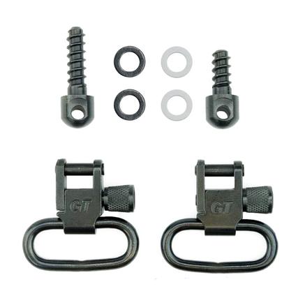 Set includes 1/2" wood screw fore end swivel stud, 3/4" wood screw rear, spacers and a pair of GT Locking Swivels.