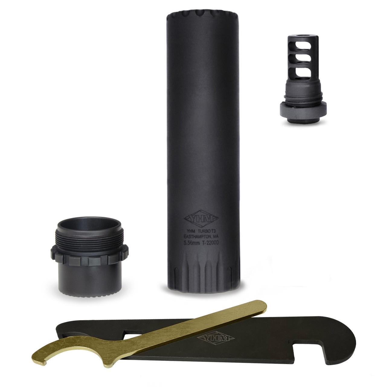 YHM Turbo T3 Suppressor with QD Muzzle Brake 5.56mm Stainless Steel/Cobalt 1/2x28