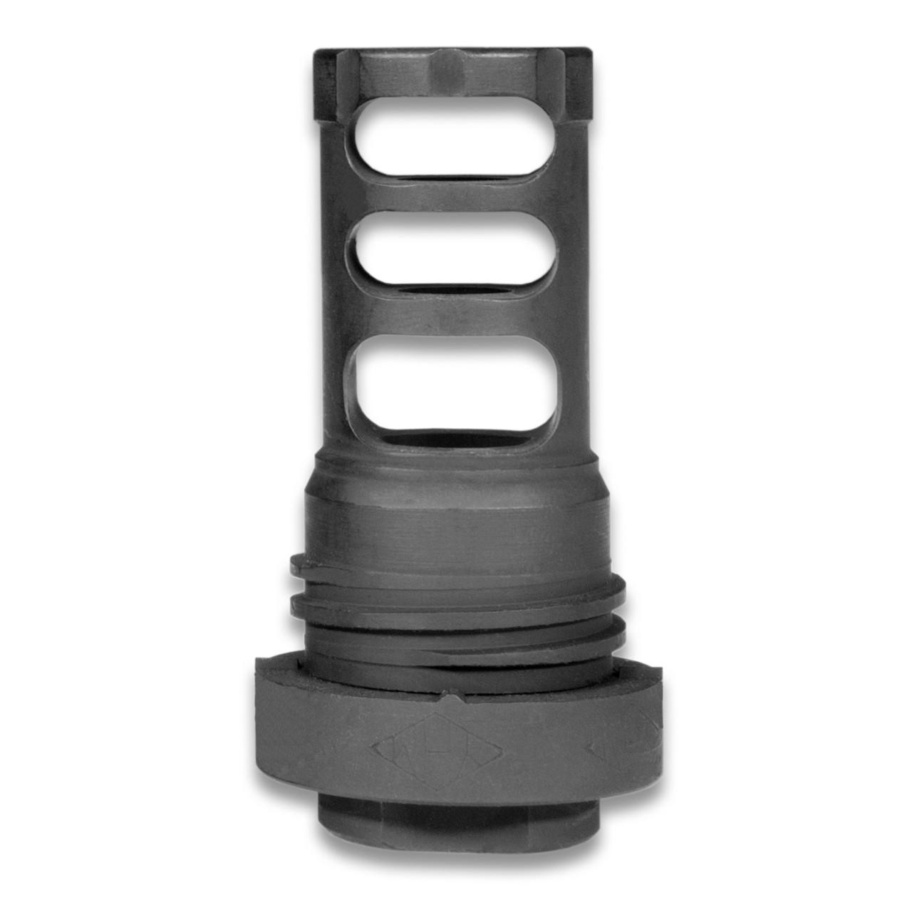 This 5.56 NATO Suppressor features reduced blowback-when compared to the previous model. The Turbo® K-RB utilizes a tubeless design made from heat treated 17-4 stainless steel along with a Cobalt 6 blast baffle. The combination of these materials allows the suppressor to be full auto rated and designed for rigorous use. The blast chamber of the Turbo® K-RB is threaded to the popular 1.375”-24 HUB thread which allows it to utilize many available mounting options. The notched rim and tri-port muzzle on the end cap make it stand out among the crowd.