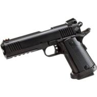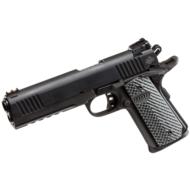 The TAC Ultra FSHC has a full tactical rail and is built with a double stack magwell with 13-round capacity. This pistol also has a 5" button rifled barrel supported by a full length guide rod and full dust cover. Includes a low-profile adjustable rear sight and high-visibility fiber optic front sight. Also fitted with a skeletonized hammer and trigger with adjustable over travel stop. The TAC Ultra is finished with a tough parkerzied matte coating and has battle ready G10 tactical grips.