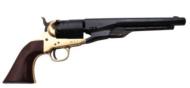 Recognized as the mainstay of the Union Army, the 1860 was ordered to fill the ranks. The .44 caliber revolver was as powerful as it was popular. After the Civil War, 1860 could long be found in Army posts and across the frontier. This revolver features an 8" blued barrel, brass frame, brass guard, and walnut grip. It is avaliable in .44 caliber and has hammer/blade sights. This revolver is 14.5" in length and weighs 2.75 lbs.