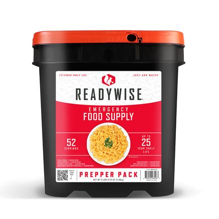 Ready Wise's 52 serving prepper pack bucket is a perfect start for any prepper. Whether you're affected by a snow storm, hurricane or other weather emergency, it's wise to be prepared. These great-tasting freeze-dried and dehydrated foods are ready in minutes when you just add water. They also come in stackable buckets with an easy Grab-N-Go handle, so they're easy to store and transport.
