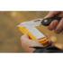 Smith's 4 inch natural Arkansas sharpening Stone removes modest amounts of metal as it polishes the cutting edge. No other type of sharpener can perform both these functions simultaneously! the 4 inch x 1 inch sized natural Arkansas Stone is mounted on a plastic base and has a plastic lid to protect the Stone when not in use. During use, the plastic lid can be inserted into the bottom of the Stone base to extend the height of the base and make sharpening your knife safer. The user's fingers grip lower on the base and remove any chance of cutting your fingers when pulling or pushing the knife's cutting edge across the sharpening surface.