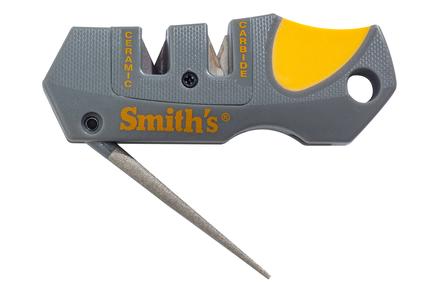 Smith’s Pocket Pal design features pre-set crossed carbides and ceramic stones, which provide the Perfect Edge every time. Carbides provide quick edge setting, and the specially shaped ceramic stones are designed to give you a razor sharp edge on either standard or serrated edges. A fold out, tapered round, diamond coated rod is designed for sharpening serrations and small gut hooks. Unit is compact, lightweight, durable, and comes with a lanyard hole