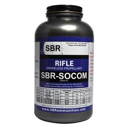 Shooters World SBR-SOCOM Rifle Smokeless Powder in 1 lbs canisters. This propellant is a high density, double base, ball powder optimized for use in the 458 SOCOM. SBR Ammunitions' extensive research and development of the 458 SOCOM cartridge had determined this powder is an excellent choice for moderate to heavy bullets in the 300 gr to 450 gr weight range.