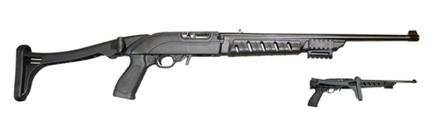 A lightweight folding stock for the Ruger 10/22 rifle / carbine. Pistol grip with storage compartment, Picatinny tri-rail forend, positive locking side folding stock with rubber recoil pad. Constructed of injection molded black polymer. Rifle shown NOT included.