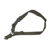 Filling the same mission requirement as the standard MS3 Sling, the MS4 can quickly switch between one-point and two-point configuration. The MS4 maintains material construction and specifications identical to that of the standard MS3, but instead of Magpul Paraclips, it features two heavy-duty push-button QD Sling Swivels, along with a custom steel connection ring to allow one to two-point convertibility. This modification allows compatibility with QD sling cups commonly found on lower receivers, receiver end plates, buttstocks, and many low-profile forward QD Sling Mounts.